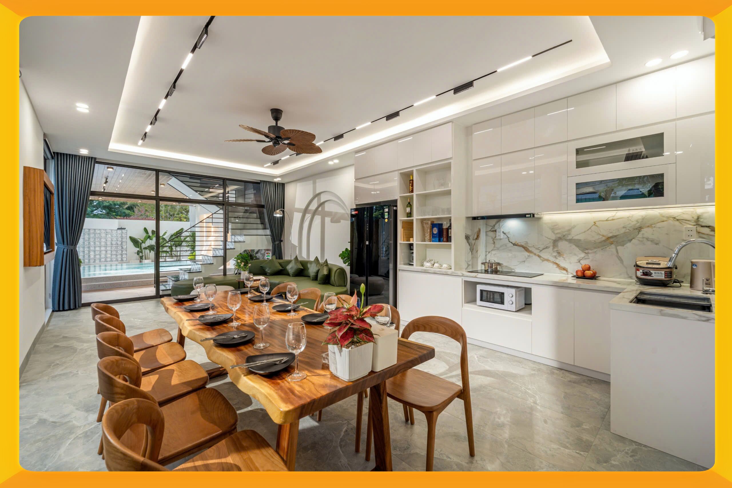 ⭐⭐ 프라임하우스 6룸 8베드 풀빌라! 가라오케룸 완비, 넉넉한 크기의 수영장 (가로 9m x 세로 3m x 수심 1.6m)에서 여유로운 시간을 보낼 수 있습니다. 다낭공항 및 주요 관광지와 가까운 최적의 위