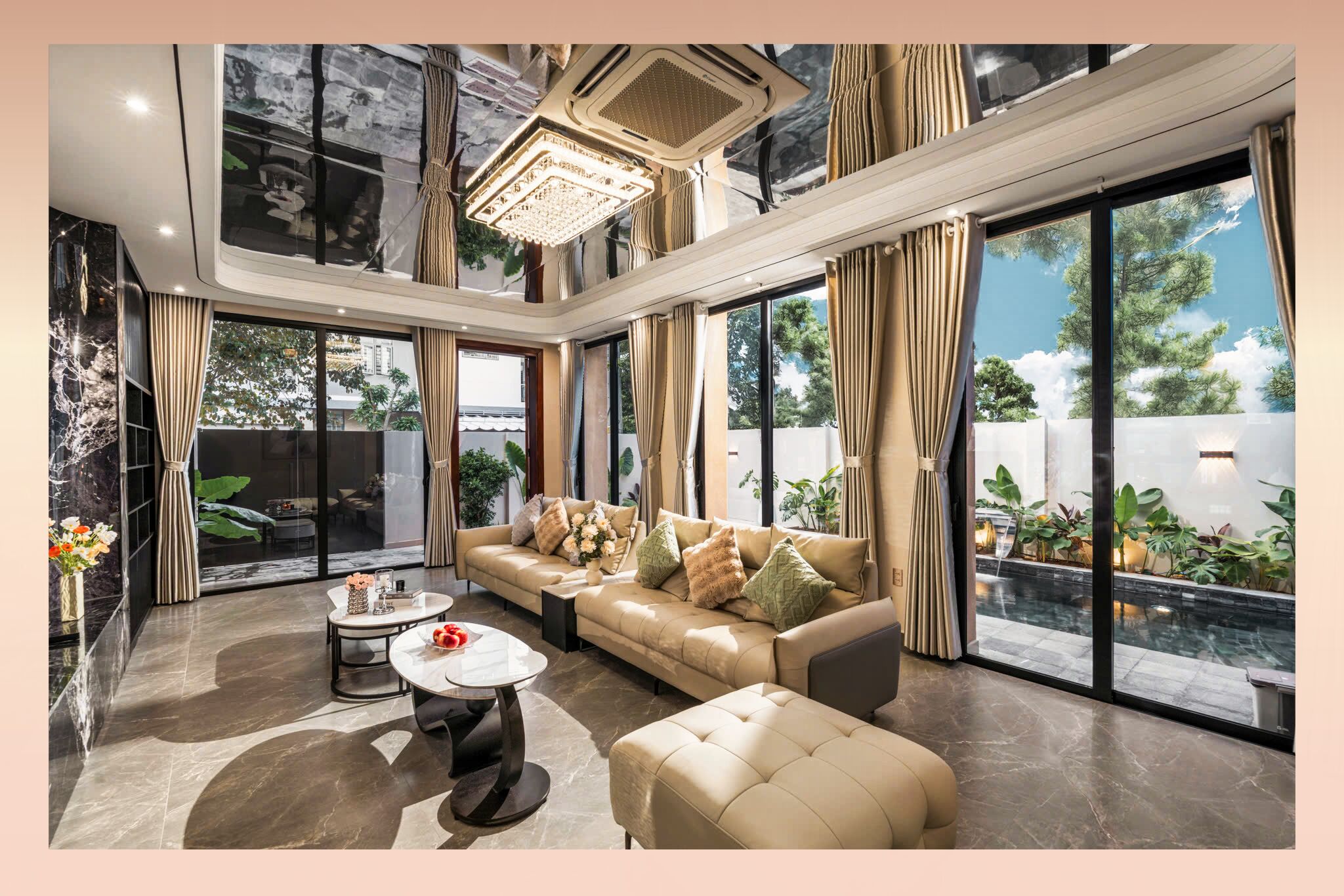 넓은 거실과 고급 주방, 야외 수영장이 1층에 구성되어 있어 파티와 휴식을 동시에 즐길 수 있고, 외부 소음을 완전히 차단한 설계로 도심 속 완벽한 휴식을 누릴 수 있답니다.
